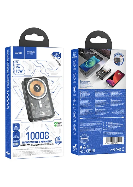 Портативное зарядное устройство Power Bank Hoco Q14A Ice Crystal PD20W с БЗУ 10000 mAh Black