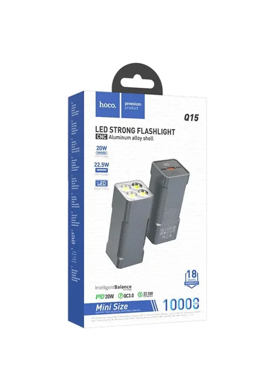 Портативное зарядное устройство Power Bank Hoco Q15 Flashlight 22.5W 10000 mAh Metal gray
