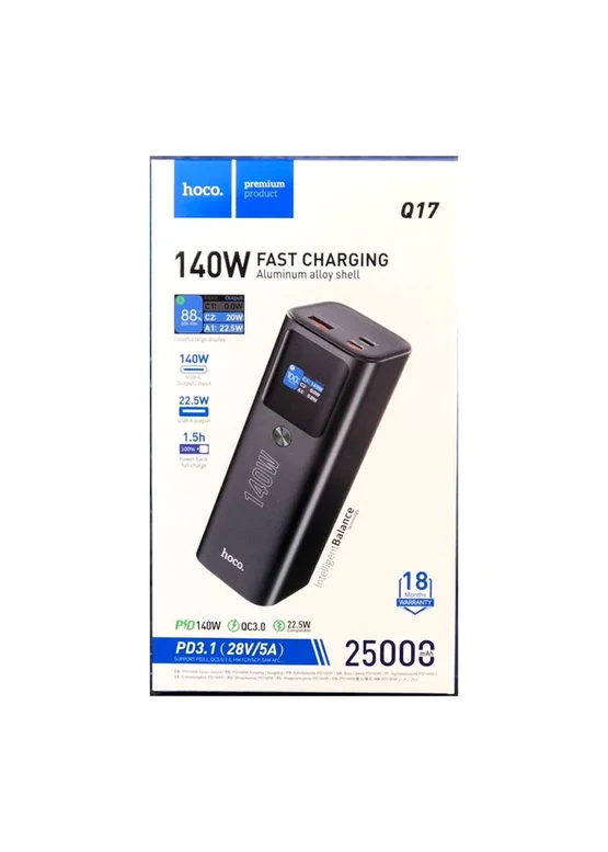Портативное зарядное устройство Power Bank Hoco Q17 Electric PD140W 25000 mAh Black