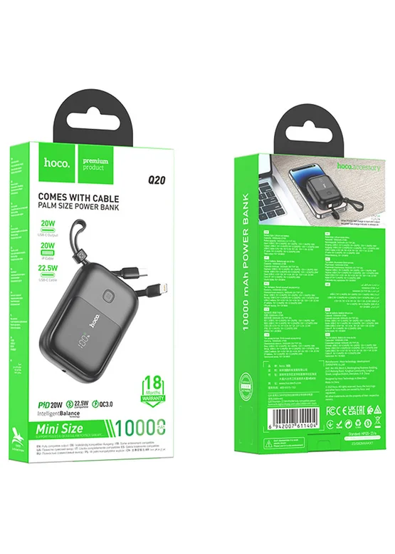 Портативное зарядное устройство Power Bank Hoco Q20 Fountain 22.5W+PD20W 10000 mAh Black