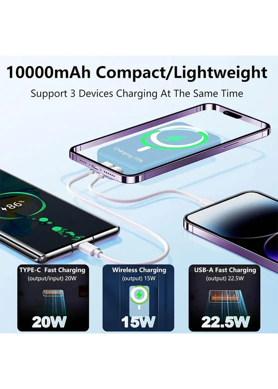 Портативное зарядное устройство Power Bank JJT-A27-1 PD20W+QC 22.5W с БЗУ 10000 mAh Light blue