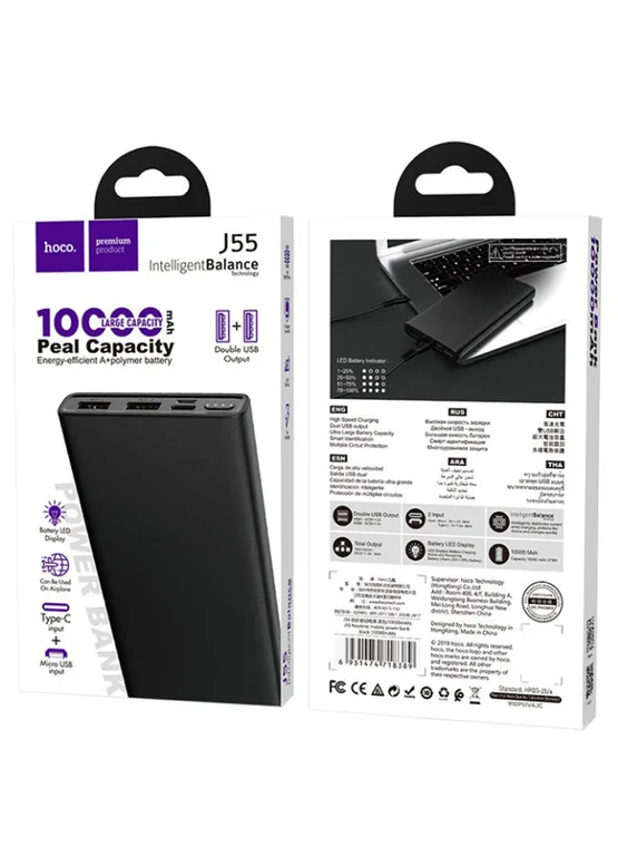 Портативное зарядное устройство PowerBank Hoco J55 "Neoteric" 10000 mAh (Черный)