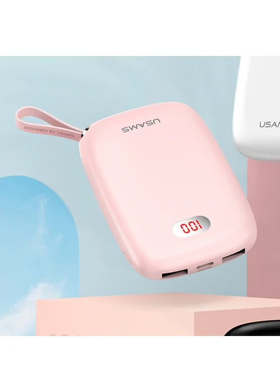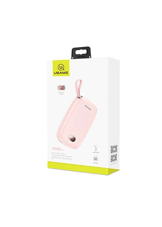 Портативное зарядное устройство Usams US-CD78 Dual USB Display With Lanyard (10000mAh) (Розовый)