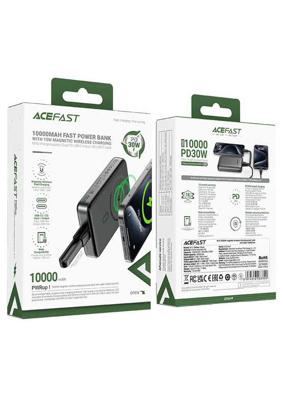 Портативное ЗУ Power Bank Acefast M10 PD30W с БЗУ 10000 mAh Black