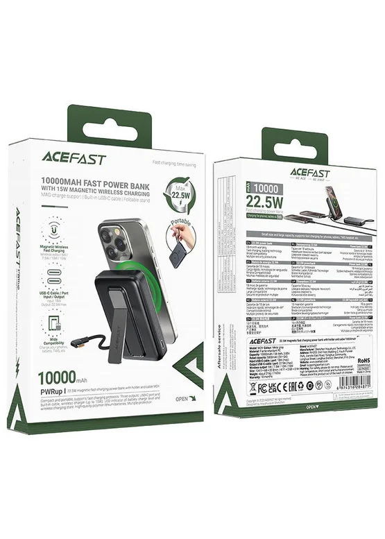 Портативное ЗУ Power Bank Acefast M24 22.5W с БЗУ 10000 mAh Metal gray