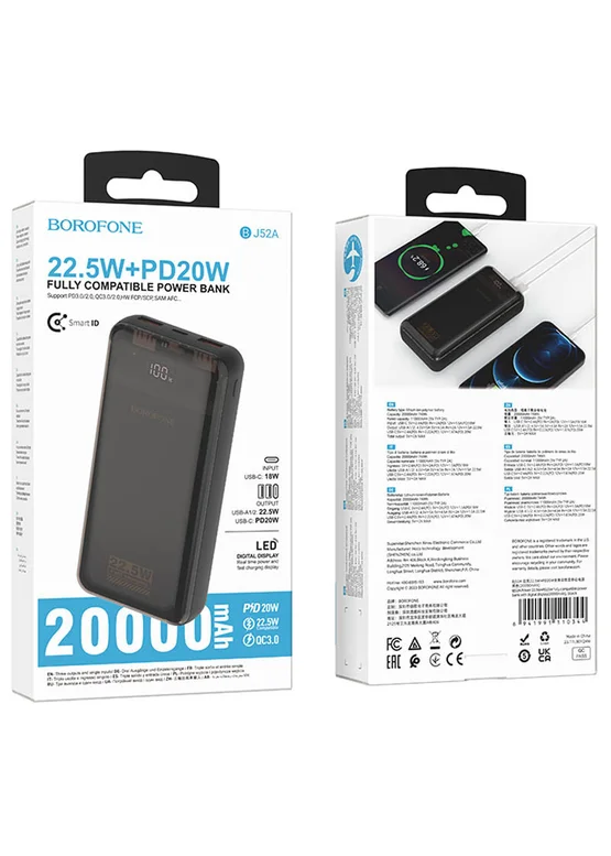 Портативное ЗУ Power Bank BOROFONE BJ52A Power 22.5W+PD20W 20000 mAh Black