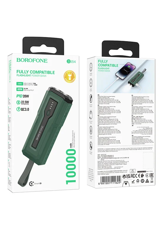 Портативное ЗУ Power Bank BOROFONE BJ54 Graceful 22.5W+PD20W 10000 mAh Green