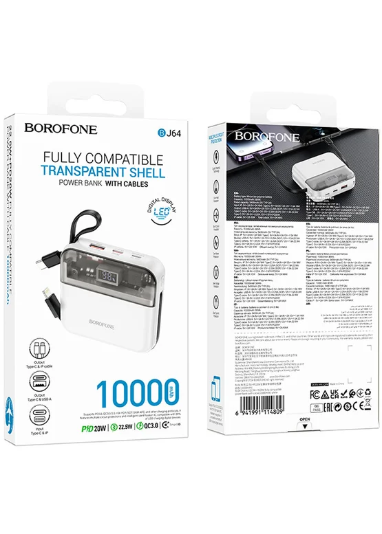 Портативное ЗУ Power Bank BOROFONE BJ64 Distinct 22.5W+PD20W with cable 10000 mAh White