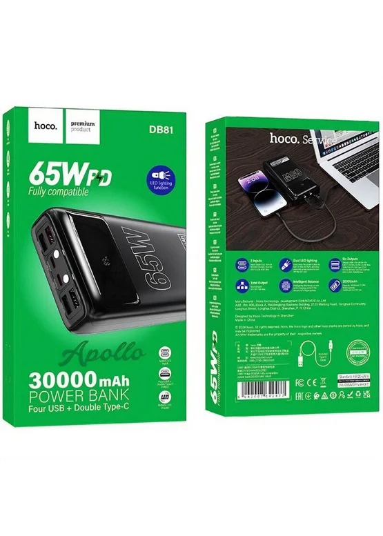 Портативное ЗУ Power Bank Hoco DB81 Apollo PD65W 30000 mAh Black