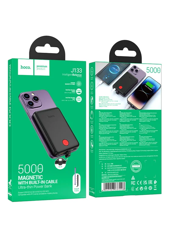 Портативное ЗУ Power Bank Hoco J133 Triumph PD20W с БЗУ + Lightning 5000 mAh Black
