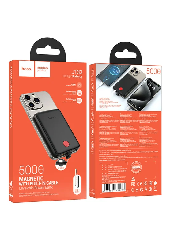 Портативное ЗУ Power Bank Hoco J133 Triumph PD20W с БЗУ + Type-C 5000 mAh Black