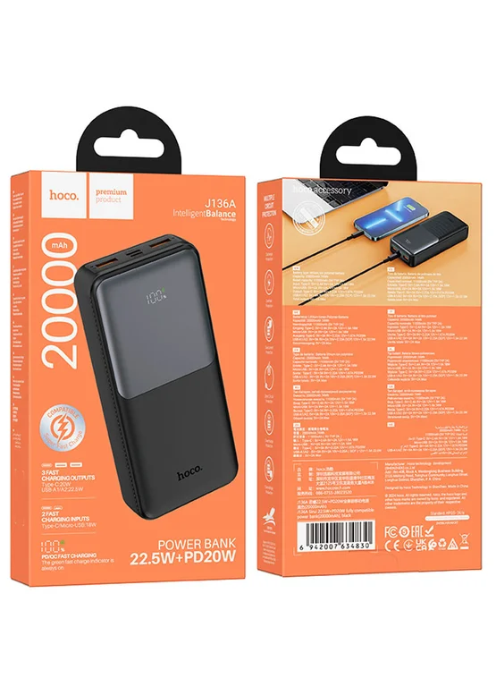 Портативное ЗУ Power Bank Hoco J136A Sirui 22.5W+PD20W 20000 mAh Black