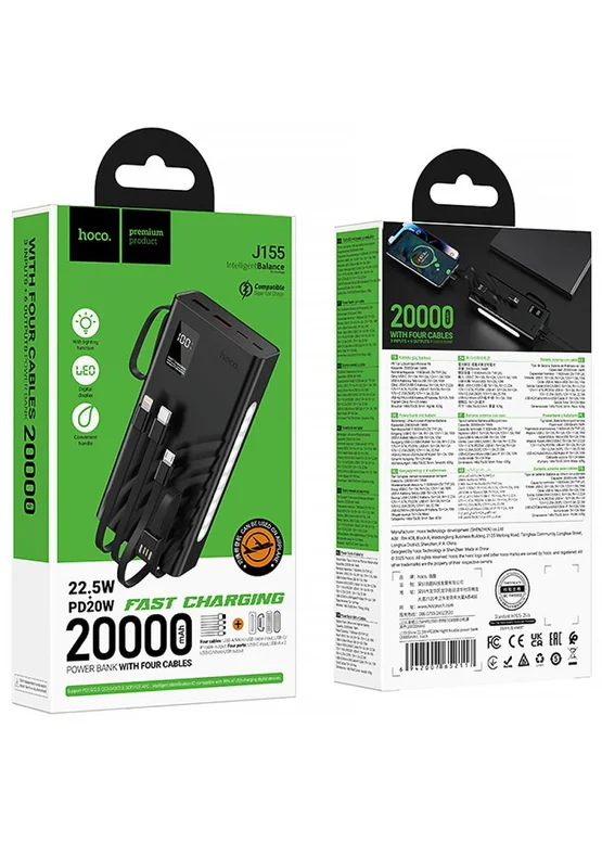 Портативное ЗУ Power Bank Hoco J155 Shine 22.5W+PD20W with 4 cables 20000 mAh