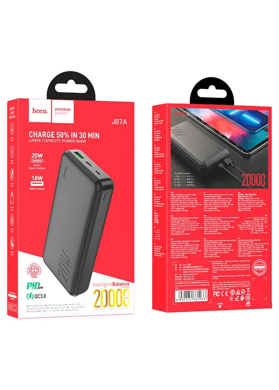 Портативное ЗУ Power Bank Hoco J87A Tacker PD20W+QC3.0 20000 mAh Черный
