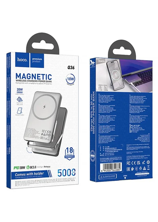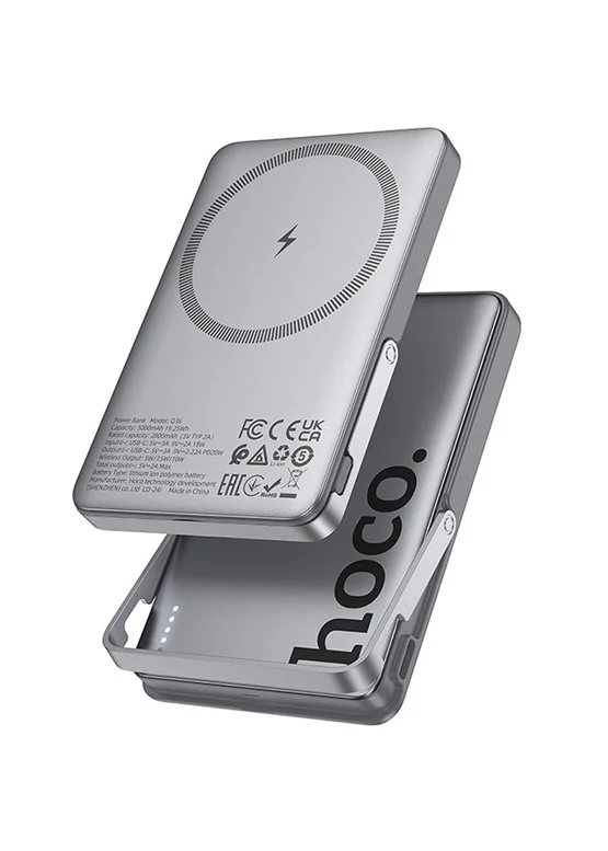 Портативное ЗУ Power Bank Hoco Q36 Sunlight magnetic suction+holder PD20W с БЗУ 5000 mAh Metal grey