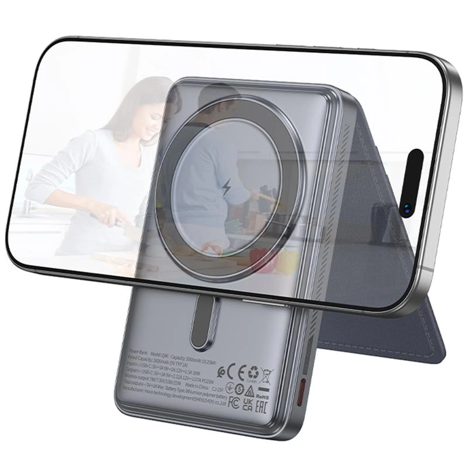 Портативное ЗУ Power Bank Hoco Q36 Sunlight magnetic suction+holder PD20W с БЗУ 5000 mAh Metal grey