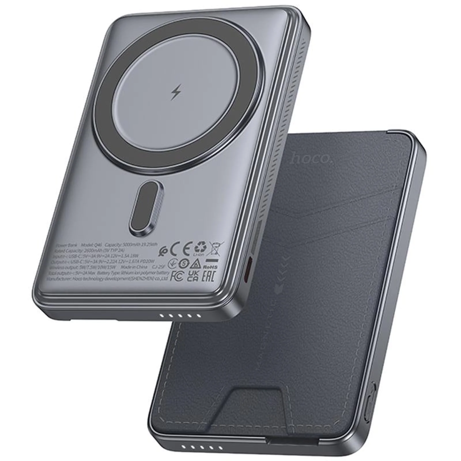 Портативное ЗУ Power Bank Hoco Q46 Title PD20W с БЗУ+card holder 5000 mAh Silver gray