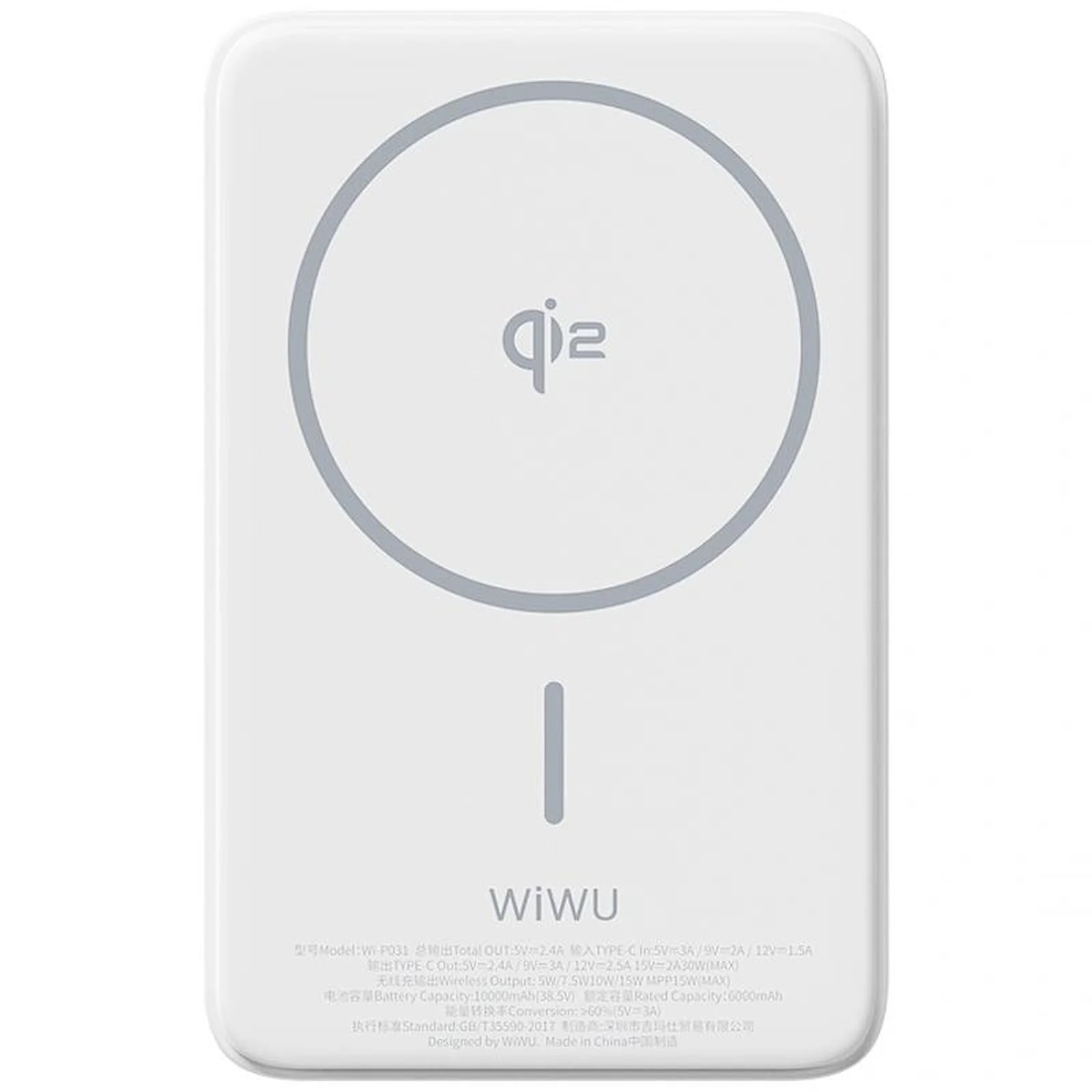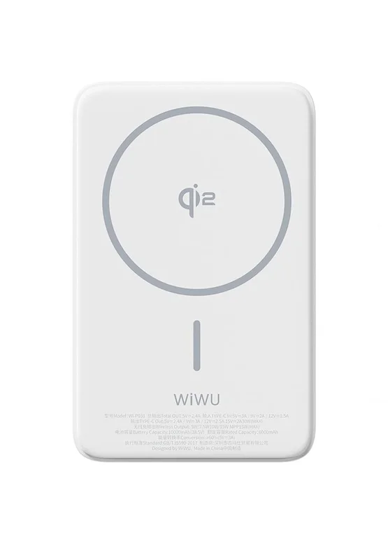 Портативное ЗУ Power Bank WIWU Wi-P031 Magnetic с БЗУ Qi2 30W 10000 mAh White