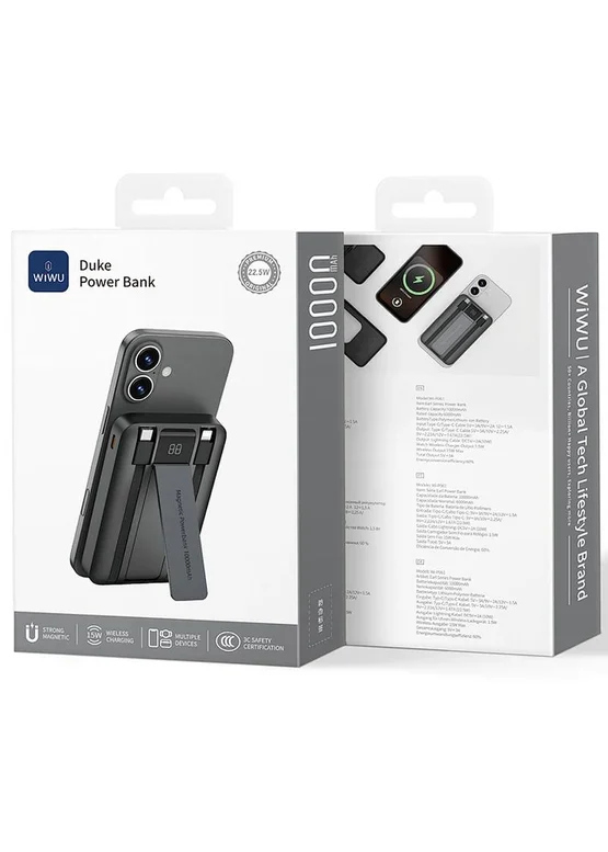 Портативное ЗУ Power Bank WIWU Wi-P061 22.5W+PD20W с БЗУ+iWatch with cable 10000 mAh Black