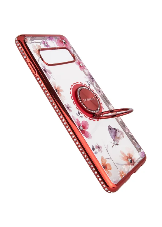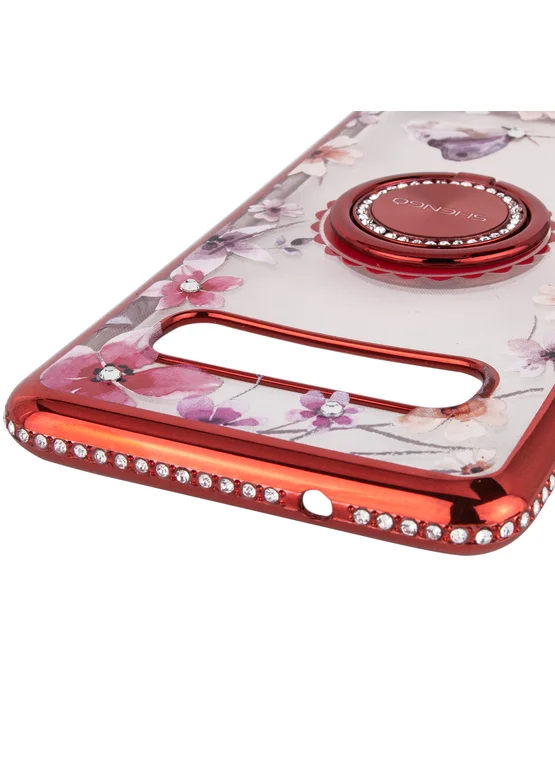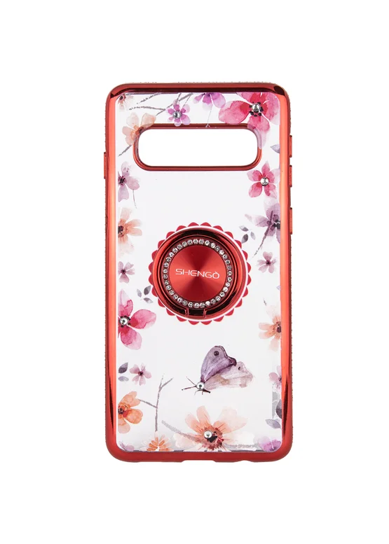 TPU чехол Shengo со стразами и кольцом-держателем для Samsung Galaxy S10+ (Красный)