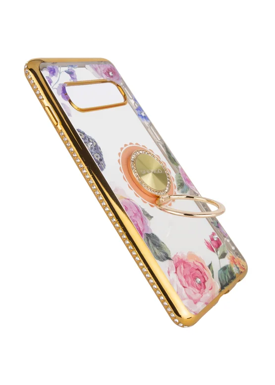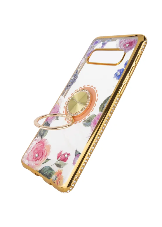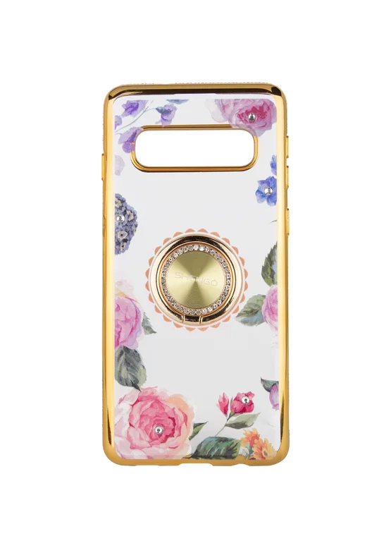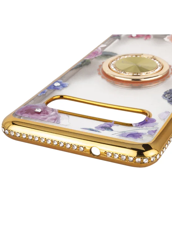 TPU чехол Shengo со стразами и кольцом-держателем для Samsung Galaxy S10+ (Золотой)