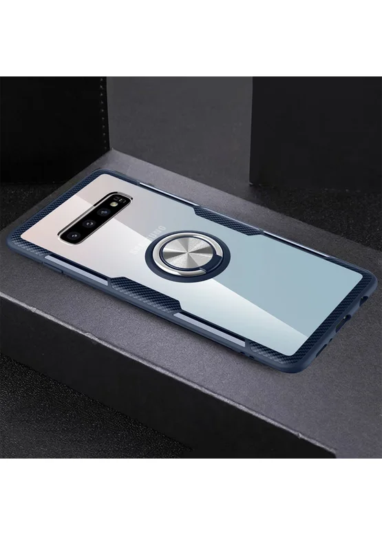 TPU+PC чехол Deen CrystalRing for Magnet (opp) для Samsung Galaxy S10+ (Бесцветный / Темно-синий)