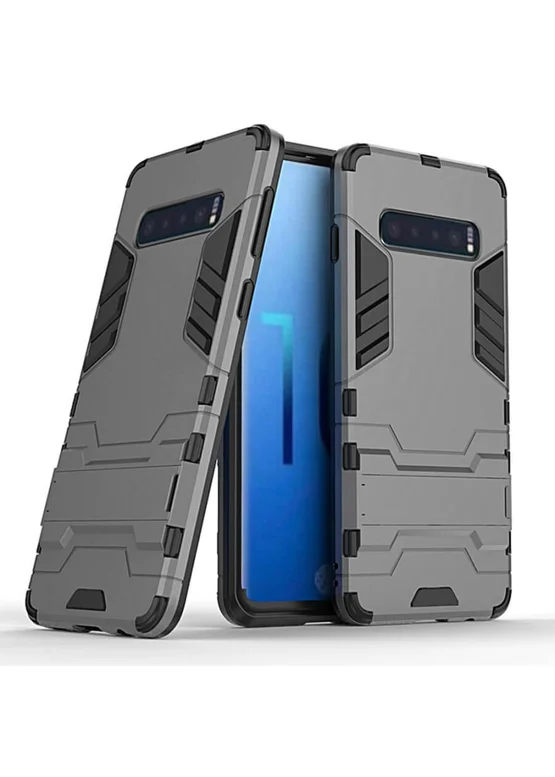 Ударопрочный чехол-подставка Transformer для Samsung Galaxy S10+ с мощной защитой корпуса Металл / Gun Metal