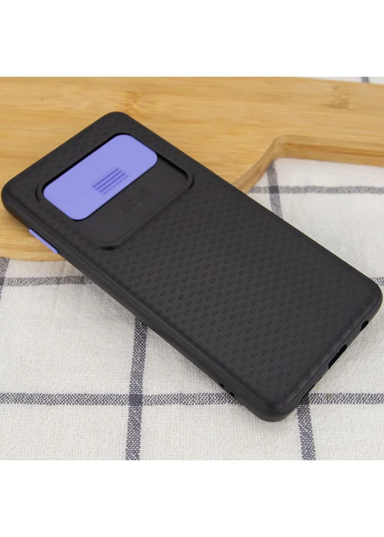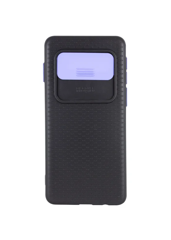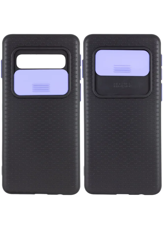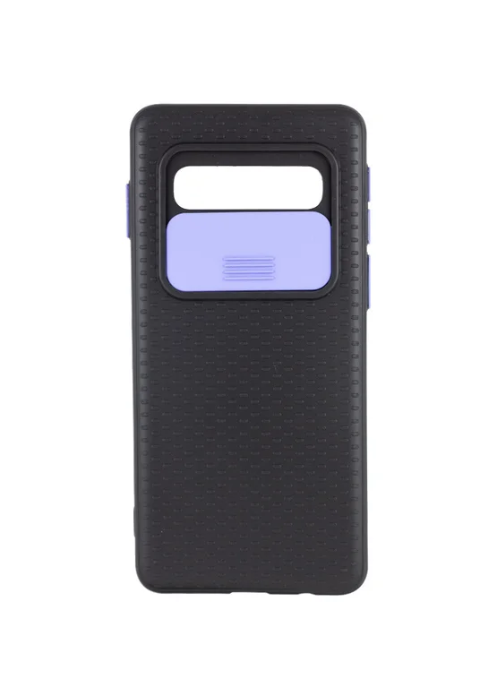 Чехол Camshield Black TPU со шторкой защищающей камеру для Samsung Galaxy S10 (Черный / Сиреневый)