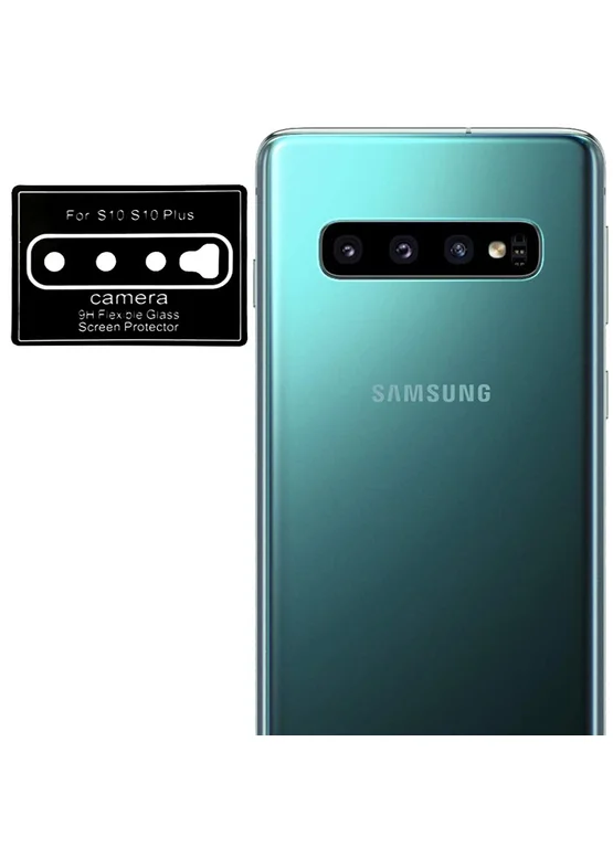 Гибкое защитное стекло 0.18mm на камеру (тех.пак) для Samsung Galaxy S10 / S10+ (Черное)