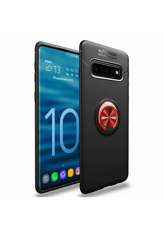 TPU чехол Deen ColorRing под магнитный держатель для Samsung Galaxy S10 Черный / Красный