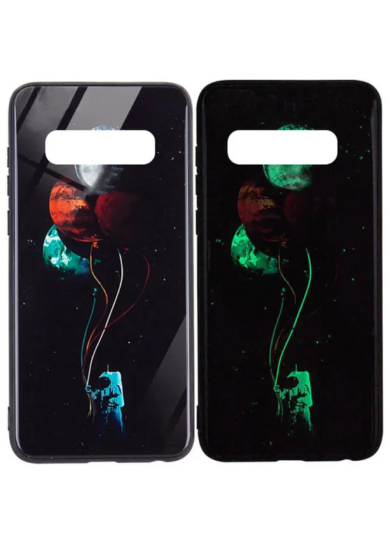 TPU+Glass чехол светящийся в темноте для Samsung Galaxy S10 Космос / Черный