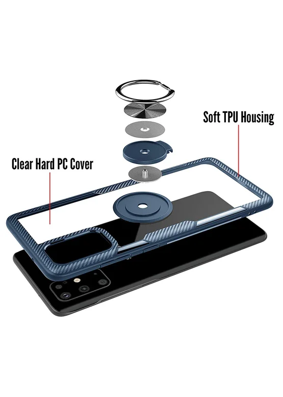 TPU+PC чехол Deen CrystalRing под магнитный держатель для Samsung Galaxy S20+ Бесцветный / Темно-синий