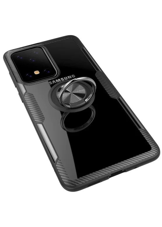 TPU+PC чехол Deen CrystalRing for Magnet (opp) для Samsung Galaxy S20 Ultra (Бесцветный / Черный)