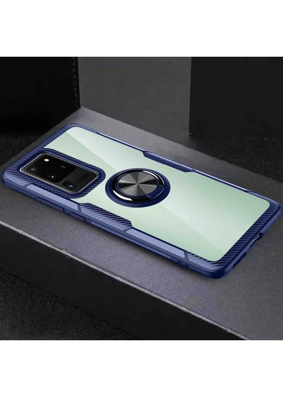 TPU+PC чехол Deen CrystalRing for Magnet (opp) для Samsung Galaxy S20 Ultra (Бесцветный / Синий)