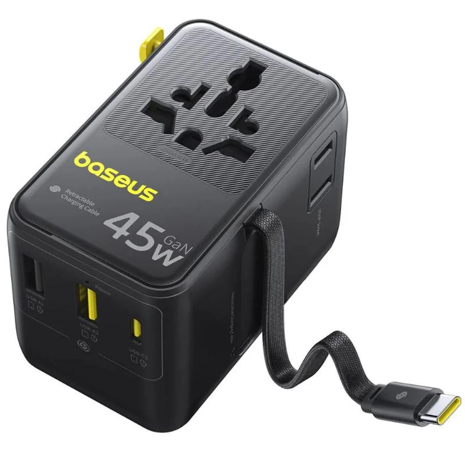 Сетевой универсальный переходник Baseus AG11 45W with retractable cable (2USB-A/1C/1Socket) (E0307F) Cosmic Black