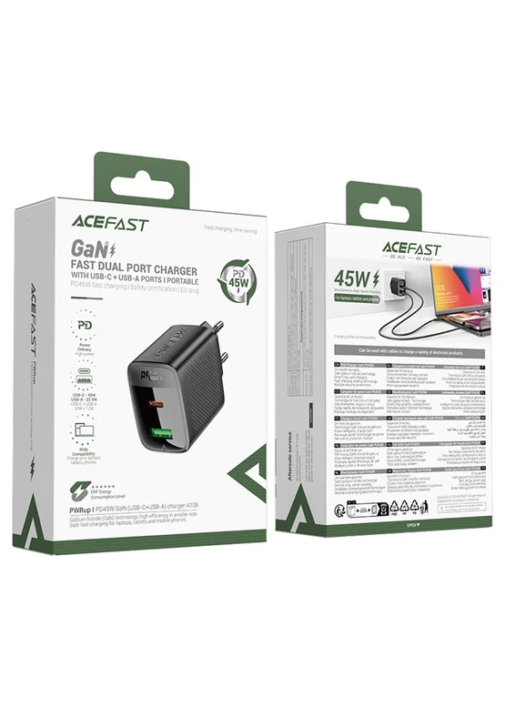 СЗУ Acefast A106 GaN PD45W (1USB-A/1C)