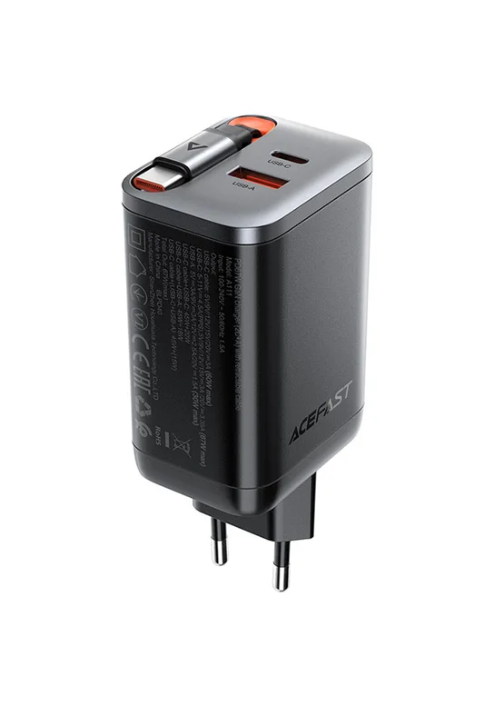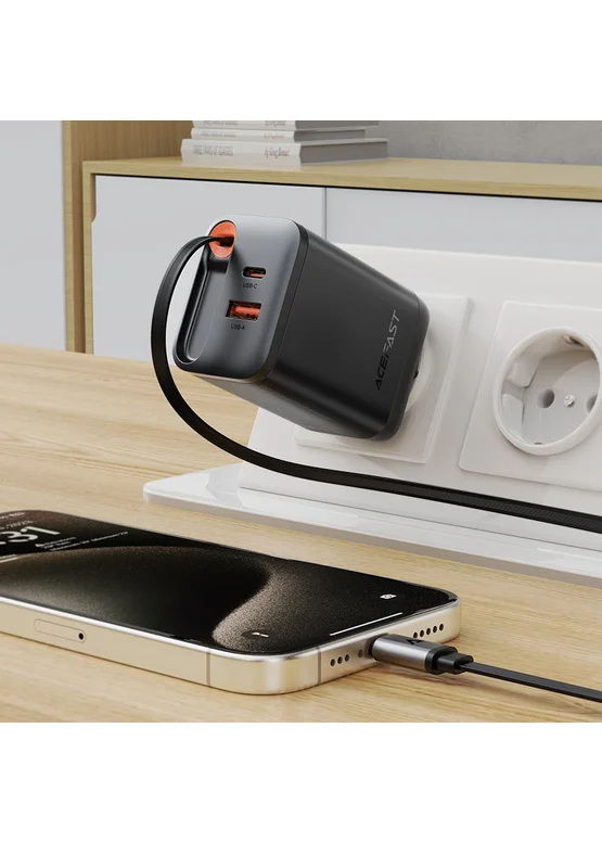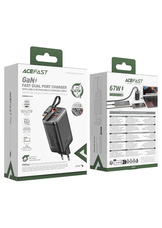 СЗУ Acefast A111 GaN With Retractable Cable Type-C PD67W (1USB-A/1C)