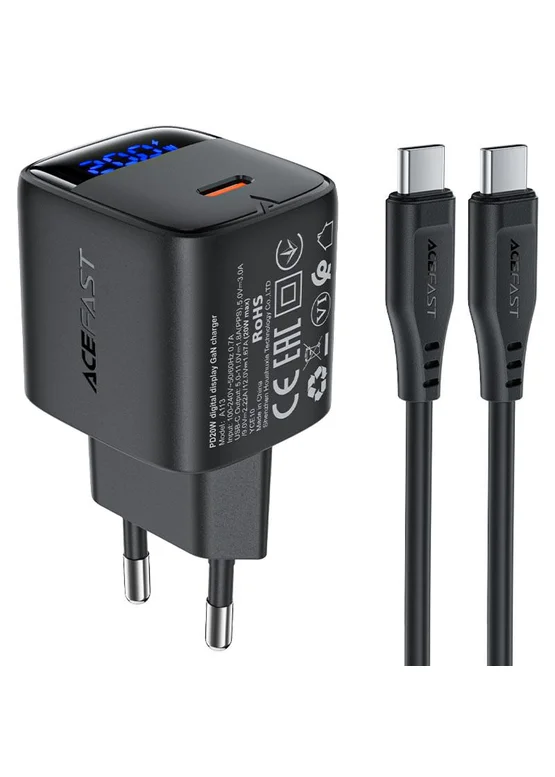 СЗУ Acefast A113 PD20W GaN (1USB-C) + кабель Type-C to Type-C Black