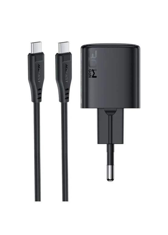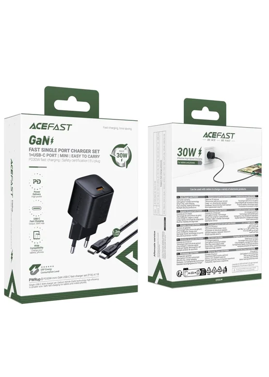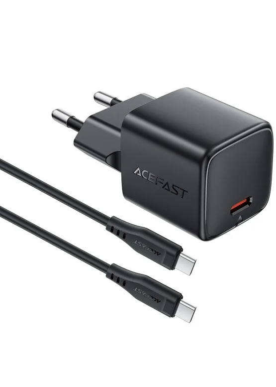 СЗУ Acefast A118 PD30W GaN (1USB-C) + кабель Type-C to Type-C Black