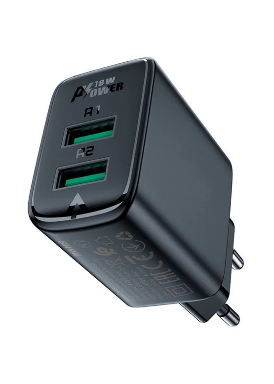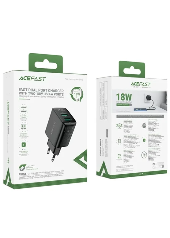 СЗУ Acefast A33 QC18W (USB-A+USB-A) dual port Black