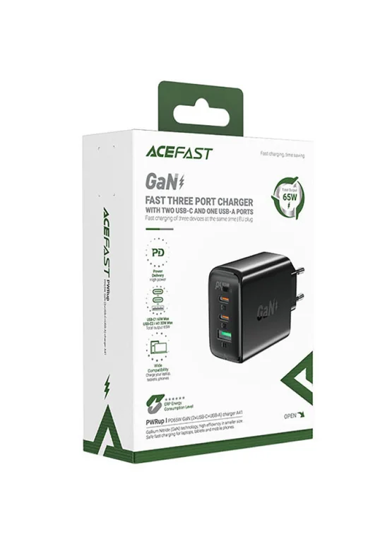 СЗУ Acefast A41 PD65W GaN (2*USB-C+USB-A) Black