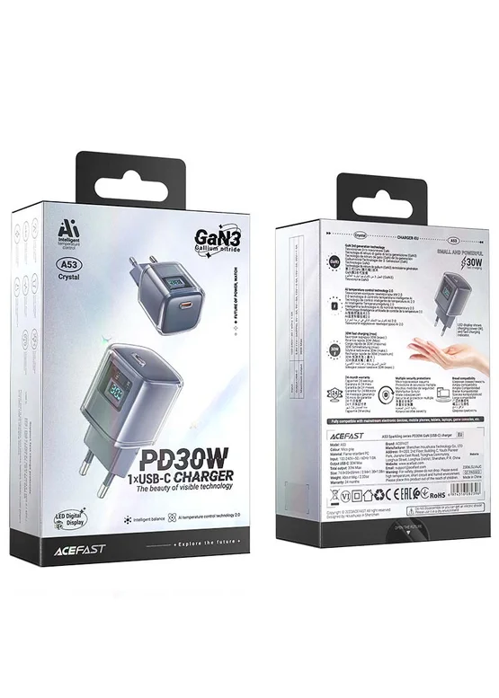 Изготовлено из прочного пластика, оно обладает высокой мощностью в 30W, что обеспечивает быструю зарядку устройства через PD-выход.