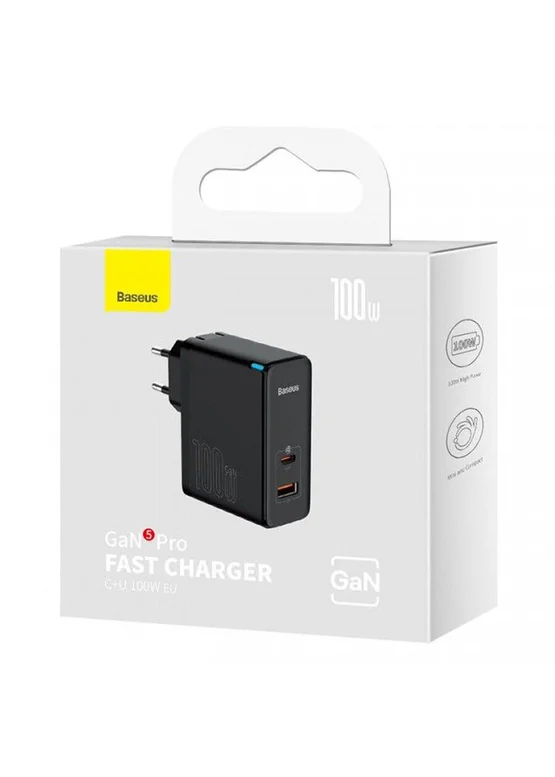 СЗУ Baseus GaN5 Pro Type-C+USB 100W EU (CCGP09020) Черный