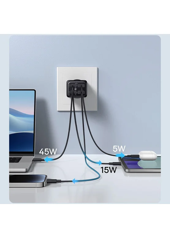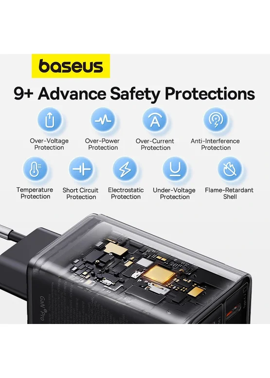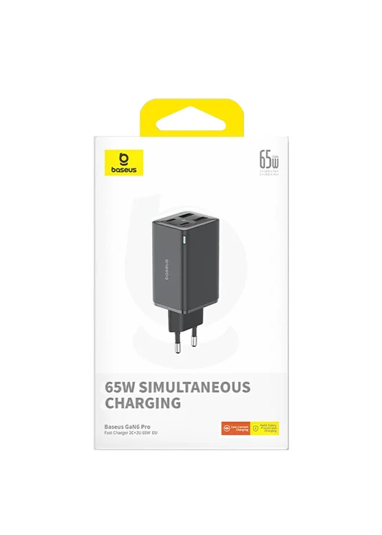 СЗУ Baseus GaN6 Pro OS 2C+2U 65W + Type-C to Type-C 100W (1m) (P10162701) Black
