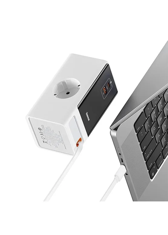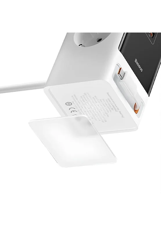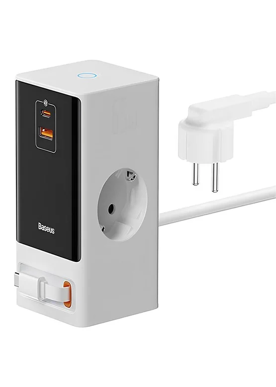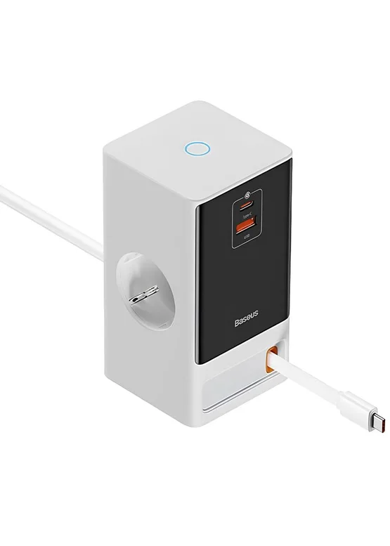 СЗУ Baseus OS PowerCombo Digital PowerStrip+Retractable-C 65W (1USB-A/1C/2Socket) (1.5m) (PSLR000) Glacier White
