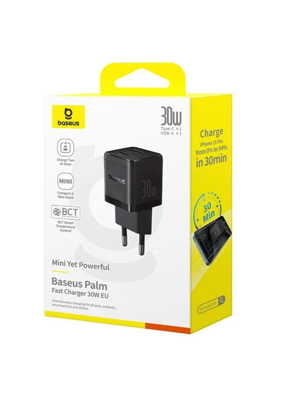 СЗУ Baseus Palm Fast Charger 30W (1USB-A/1C) (P1011160A) Cluster Black