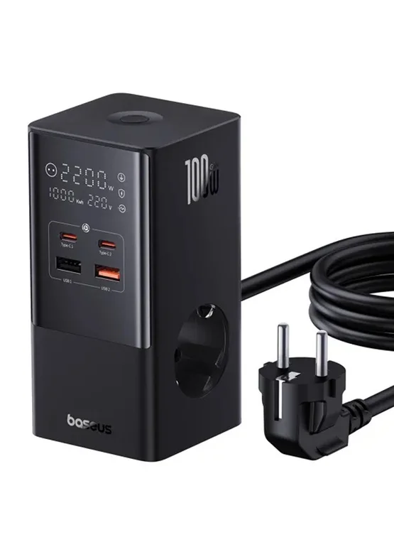 СЗУ Baseus PowerCombo Tower PowerStrip 100W (2USB-A/2C/2Socket) (1.5m) (E00023609113-00)