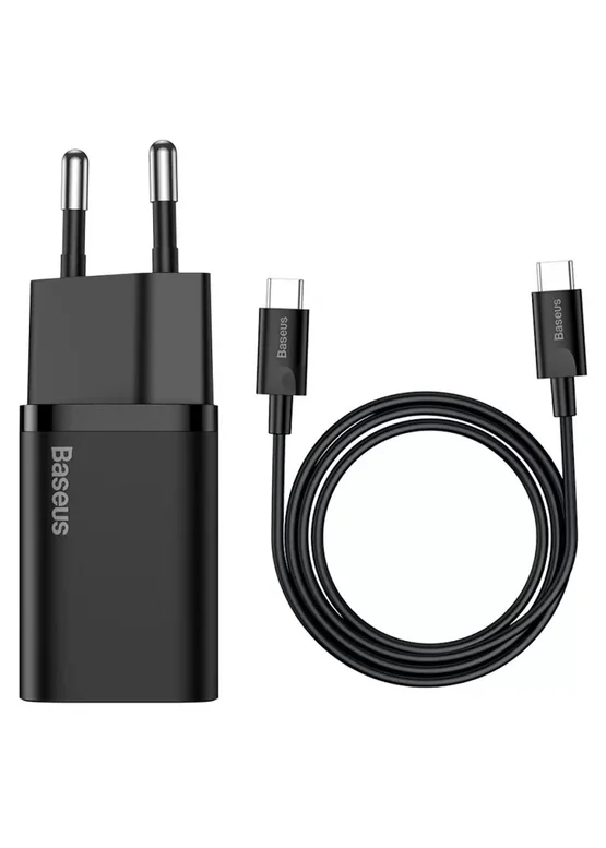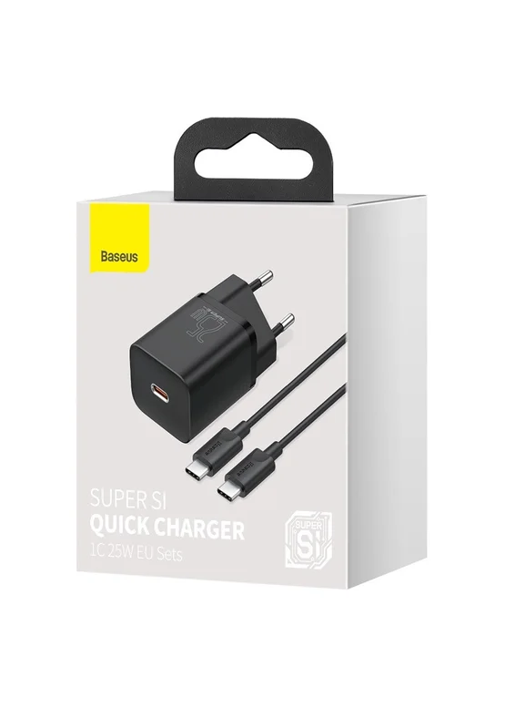 СЗУ Baseus Super Si Quick Charger 1C 25W + Cable Type-C to Type-C 3A (1m) Черный