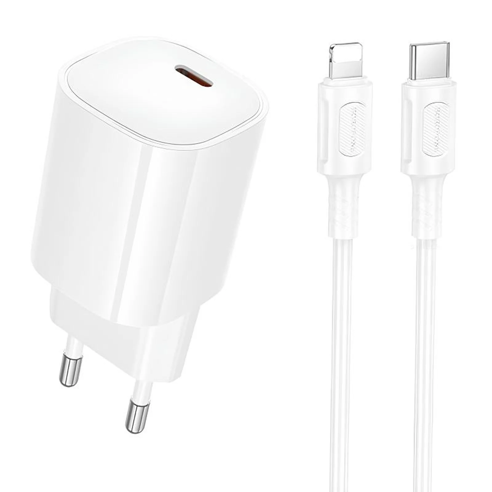 СЗУ Borofone BA103A Pudding PD20W (1USB-C) + кабель Type-C to Lightning White