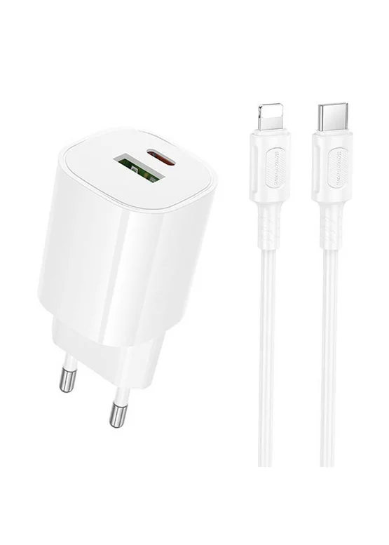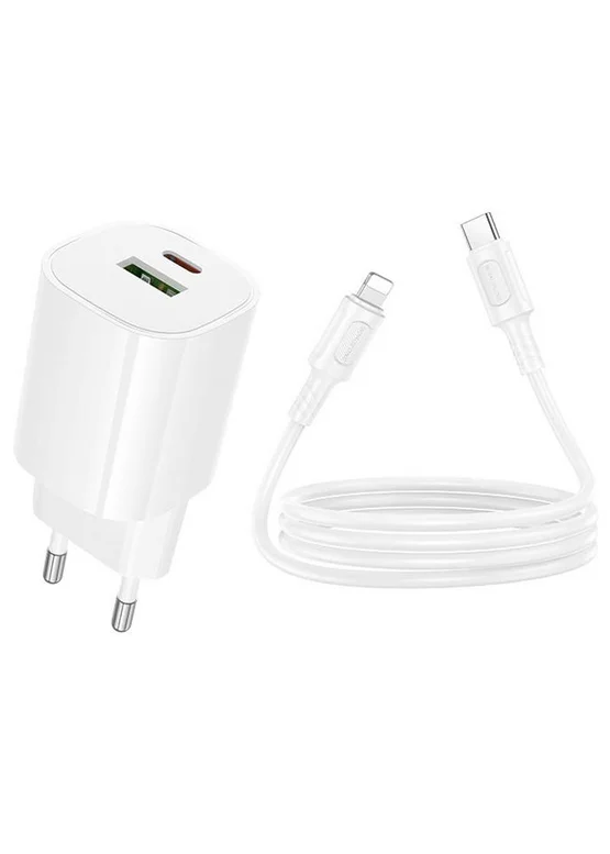 СЗУ Borofone BA104A Pudding PD20W+QC3.0 (1USB-A/1C) + кабель Type-C to Lightning White